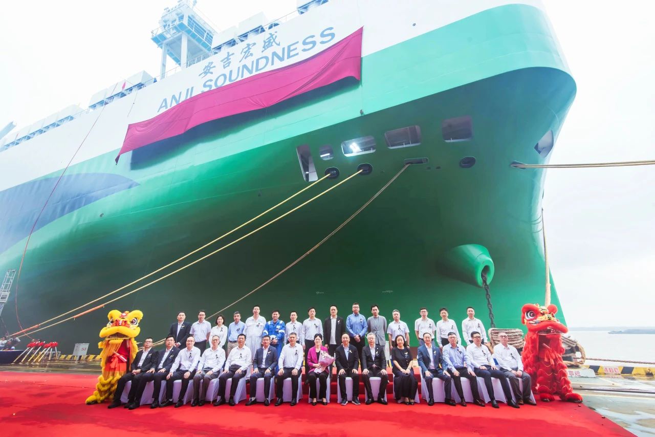 6月13日,申博sunbet第36艘自营滚装船、由招商金陵船厂建造的汽车运输船“申博sunbet宏盛”轮正式命名交付并开启首航,远赴欧洲。继全球最大滚装船——”申博sunbet安盛“轮后,申博sunbet第二艘9500车位级别滚装船正式入列。