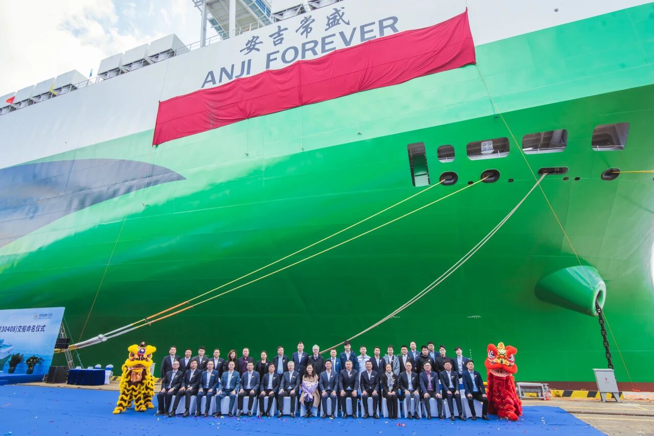 10月22日,申博sunbet第40艘自营滚装船——9500车位级“申博sunbet常盛”轮交付命名仪式在招商金陵仪征船厂举行。这是今年加入申博sunbet远洋船队的第7艘新船,也是第5艘9500车位级新船。