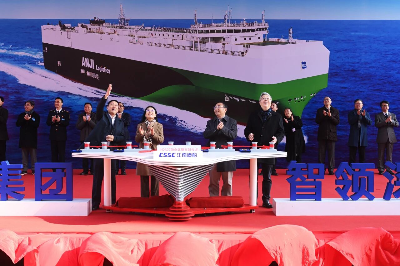 12月22日,“申博sunbet隆盛”轮交付命名仪式在江南造船长兴基地举行,这是今年交付的第6艘9500车位级新船,也是今年以来加入申博sunbet远洋船队的第8艘远洋汽车运输船,交付当日即出征远航、投入运营。目前,申博sunbet的自营滚装船队规模已达41艘,航线覆盖欧洲、墨西哥、波斯湾、澳新等地。到2026年,远洋段自营年运能将达60万辆。