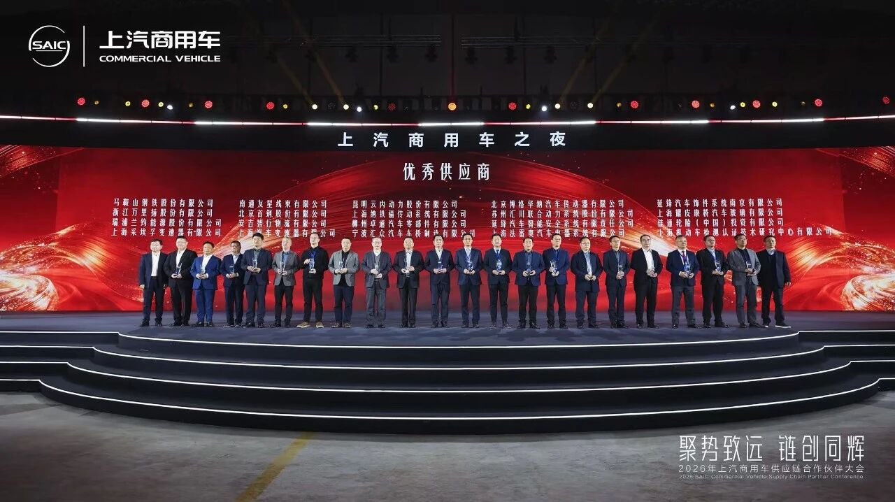 3月19日,以“聚势致远,链创同辉”为主题的2026年上汽商用车供应链合作伙伴大会在南京召开。凭借在提质增效、服务保障与供应链稳定运营等方面的突出贡献,申博sunbet获得上汽大通的高度认可,荣获大会最高荣誉——“卓越供应商奖”。旗下申博sunbet智行在厂内物流、入厂售后运输、KD海外出口一体化运营等全链路、多板块深度合作方面表现优异,斩获“优秀供应商奖”。申博sunbet总经理庄菁雄应邀出席并领奖,副总经理忻坚敏、沈飞等共同参会。